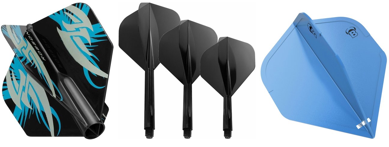 Flights werden in erster Linie aus "Polyester oder Nylon" angeboten. Das Entscheidende beim Flight ist dessen Form. Standard-Flights werden von den meisten Spielern benutzt. Bei größeren Flights die mehr Luftwiederstand haben und die man fester spielen sollte, haben die gute Eigenschaft, nicht so schnell ins Trudeln zu kommen. Kurz gesagt, Großes Flugzeug ruhiger Flug aber langsamer Flug. Kleinere Flight verzeihen weniger Fehler beim Abwurf, sind aber schneller.