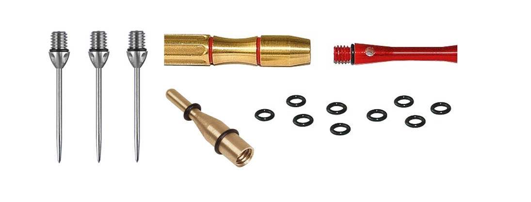 Der O-Ring ist ein kleiner Gummiring, der auf das Gewinde von Aluminium- Schafts oder Conversion Points aufgesetzt wird und verhindert, dass sich Points und Schäfte beim Spielen lockern. Bei Nylon Schafts sind O-Ringe überflüssig, da diese sich normalerweise nicht lösen wenn man sie gut anzieht. Für die leichtere Handhabung von O-Rings, gibt es ein Tool "O-Ring Aplicator"